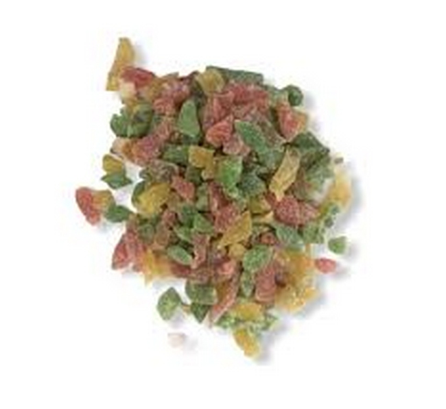 Las frutas nevadas sueltas son frutas deshidratadas cubiertas con azúcar, que combinan dulzura y color en cada bocado.