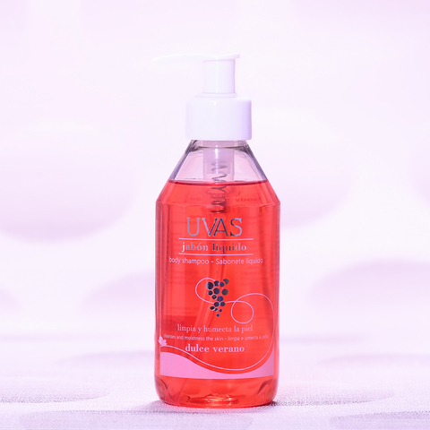 UVAS jabón líquido dulce verano 250ml limpia suavemente la piel mientras la hidrata, dejando un aroma fresco y dulce que recuerda a los días de verano. Su fórmula delicada es apta para uso diario, ayudando a mantener la piel suave, limpia y con una sensación agradable de frescura y bienestar.