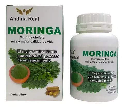 La moringa ANDINA REAL es un suplemento elaborado con extracto de Moringa oleifera, planta reconocida por su perfil nutricional y su uso tradicional como complemento natural. Se presenta en envase de 60 cápsulas, lo que permite una dosificación cómoda y fácil de incorporar a la rutina.
