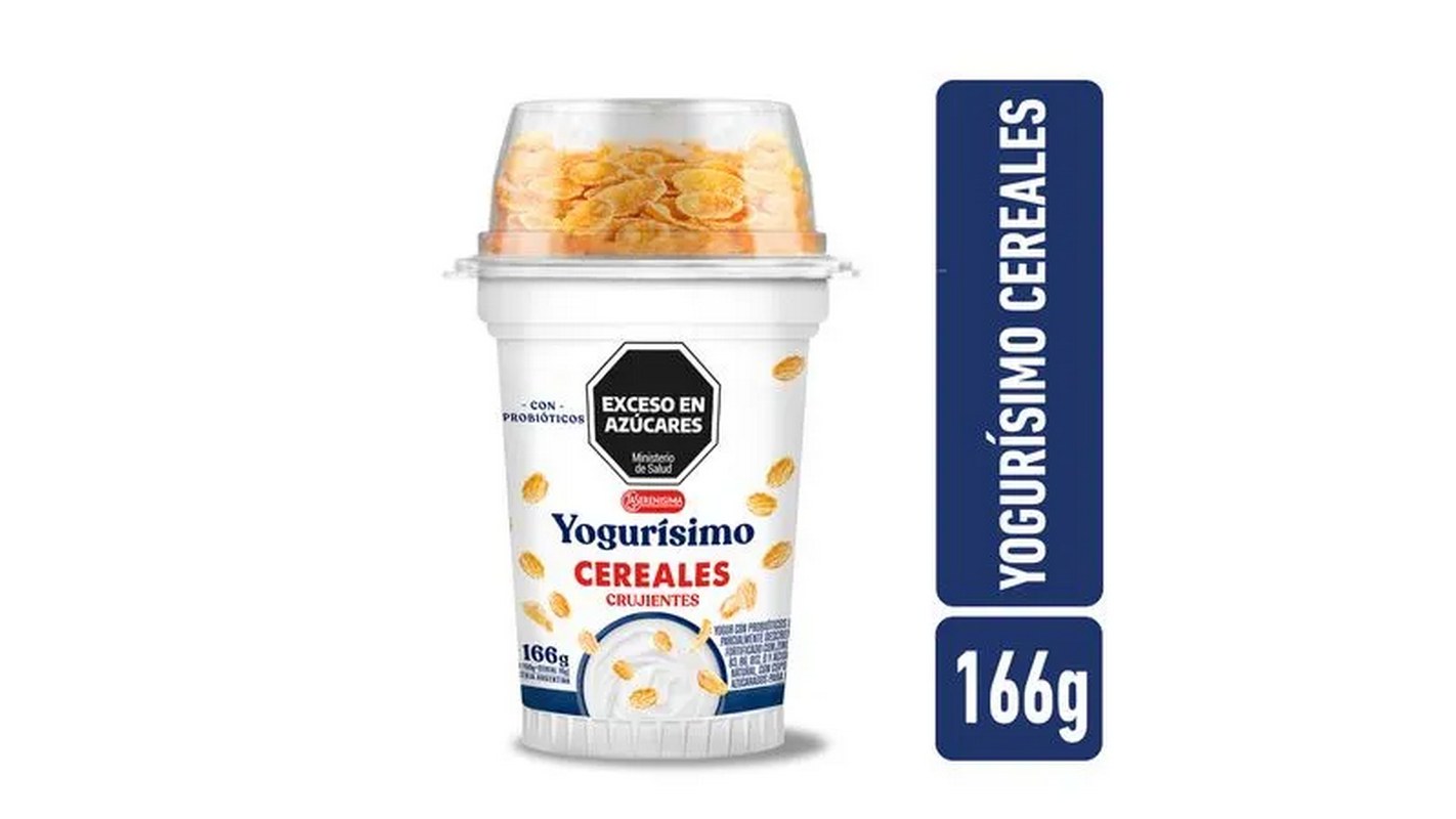 Disfrutá del Yogur Reducido en Azúcares con Cereales 162 g de Yogurísimo, una combinación de yogurt cremoso y cereales crocantes con menor contenido de azúcares.